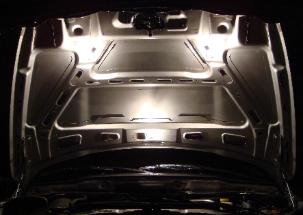| Lazar Lites Mount a pair of powerful driving lights on the underside of the hood to keep them out of sight (& out of the way) with enough lateral separation to prevent working in your own shadow. Installs easily with basic hand tools - wiring circuit runs are made through hood bracing for the Do It Yourself Kit, while the Plug & Play Kit allows you to simply snap the completed wire harness into the hood's factory holes and connect the WeatherPak plugs into their sockets. DIY Kit: 2 halogen bulbs with WeatherPak plugs & sockets, SS304 clamp discs & SS self-tapping hex screws, under hood toggle switch, automotive cross-link wire, self-sealing HydraLink connectors and all necessary wire terminations. $ 95.00 Auto Lites $ 110.00 TripLites $ 125.00 AutoTripLites $ 140.00 P & P Kit: prefabricated DIY Kit + WeatherPak connectors, flex conduit, snap-in mounts and pre-terminated wiring harness. $165.00 Auto Lites $ 180.00 TripLites $ 195.00 Auto TripLites $ 210.00 P&P Lites Prefabricated wiring harness installs in minutes using WeatherPaks - flex conduit snaps into factory hood holes. Auto Lites option adds $ 15.00 TripLites option (3rd bulb) adds $ 30.00 Auto Lites have an arming switch so your Lazar Lites turn on automatically when you open the hood! Trip Lites add a 3rd bulb for 50% more lumens - cheap sunglasses may be required. |