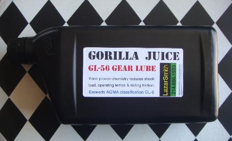 | Gorilla Juice STOP using Automatic Transmission Fluid in your manual gearbox! Formulated for use in G56 transmissions, this GL-5 spec lube is an excellent G56 gear oil available for extreme pressure tooth-on-tooth contact in helical gearsets. Great for hypoid and spur gears too! Reduces shock loading, operating temperature & sliding friction. 60W-115 blend exceeds OEM specifications for general use. Superior transmission & differential life through better chemistry - Gorilla Juice blends concentrated EPL (extreme pressure lube) and anti-scuff additives with metal de-activators & friction modifiers into high quality synthetic base oil for maximum performance use in the most demanding conditions. Available in quart bottles with Yorker spouts - 3 quart minimum. T-case fill (3 qt) $ 54.00 Box (8 qt) $ 144.00 Case (12 qt) $ 204.00 |