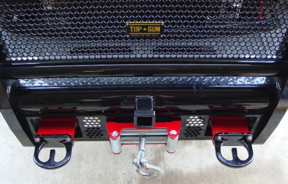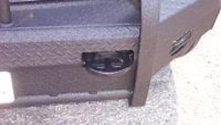 Tow-hook Xtenders Xtenders mount the factory heavy-duty tow-hooks 4" further out to prevent scratches & dings in the truck's front end when using chains, hooks, cables or straps. Xtenders' sturdy steel construction make a great step to stand on for detailing your truck or while wrenching under the hood, and provide a convenient, easy to grab handhold when working underneath your rig. Ships with SS hardware to mount factory tow hooks - use OEM bolts to install Xtenders to frame brackets. Coated in your choice of color - gloss black standard. $ 95.00 per pair Custom sizes available. |