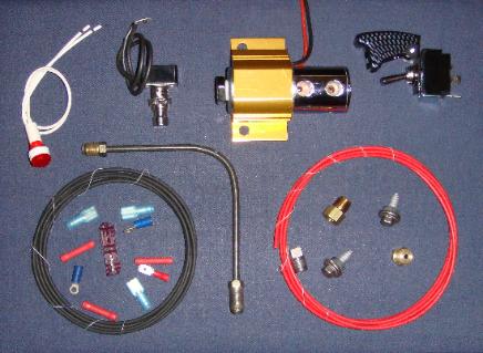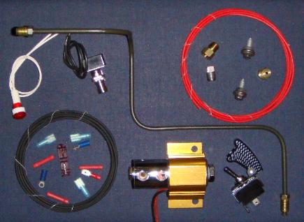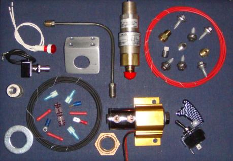 LineLok Kits 12V DC multi-port SS solenoid with billet aluminum anodized heat sink & mounting bracket with hardware, brake line, safety arming switch, WOT switch, warning lamp, cross-link wire & electrical connectors and brass & 304SS brake system pressure fittings (installation requires opening service brake hydraulic circuit). Fits 2nd & 3rd Gen Dodge Rams - custom kits available to fit any truck. LineLok Kit $ 185.00 contacts & stainless steel piston and all required brake fittings - ideal for driving electrical circuits such as nitrous or water/methanol stages, converter lockup, fuel delays or ECM timing boxes for drag racing use. Hydraulic Pressure Switch Kit $ 125.00 LineLok Kit w/ Pressure Switch $ 305.00 Brake Pressure Gauge Fine-tune pedal position with LineLok for better reaction times! $ 45.00 |